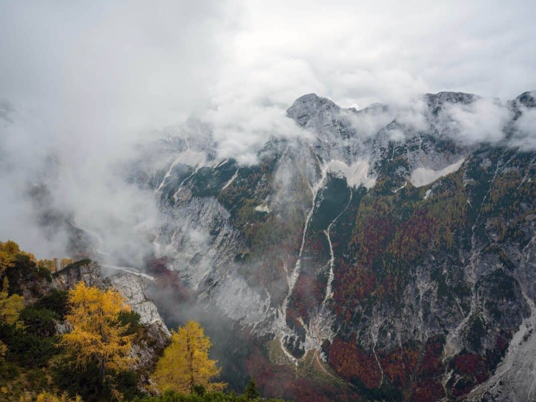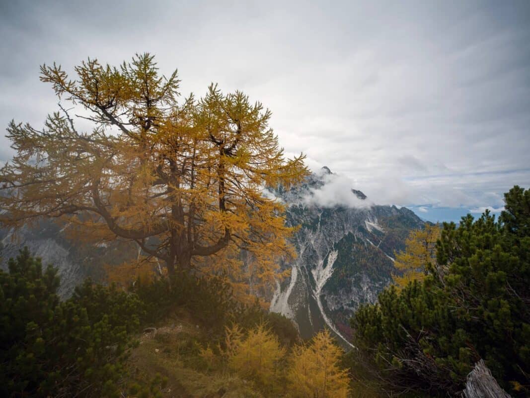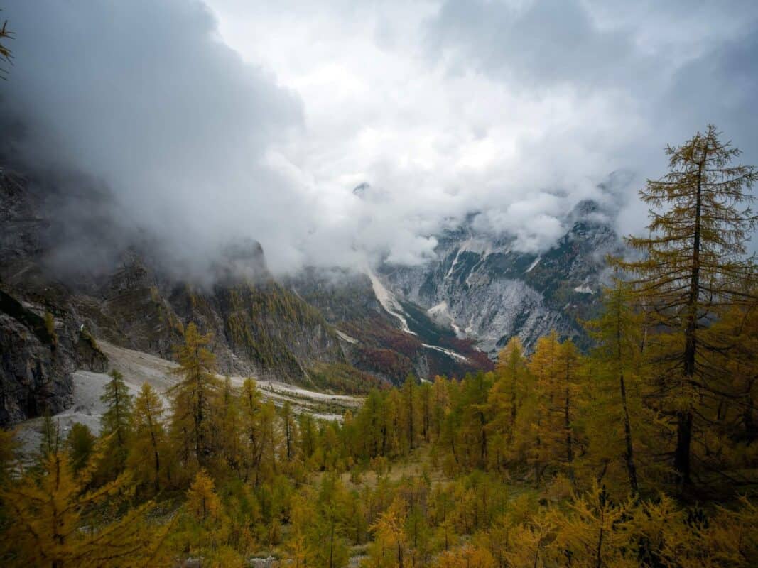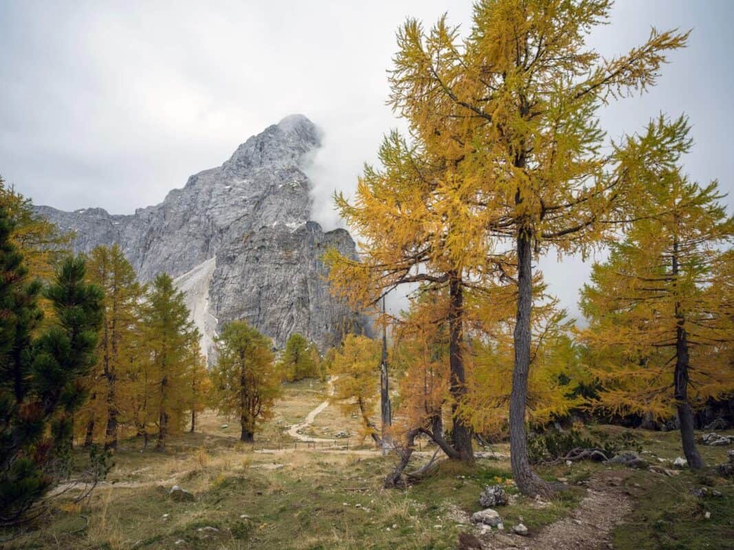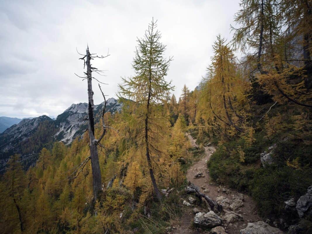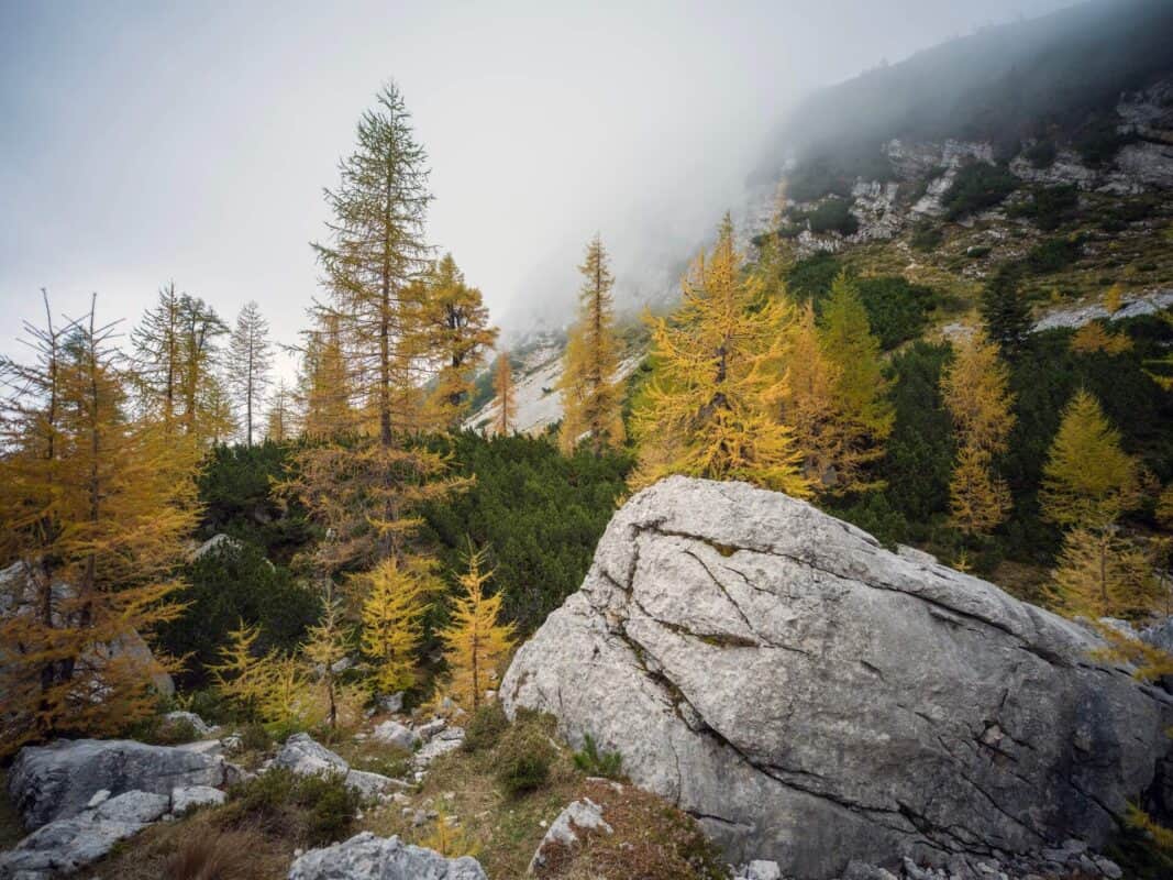 Ahogy a délután estébe fordul, a nap kezd elhalványulni. A vörösfenyők aranytónusai narancssárgává, majd mélyvörössé válnak, míg végül az egész erdő úgy ragyog, mintha lángolna. Az ösvény visszafelé Erjavčeva Koča szinte misztikusnak tűnik ebben az órában. A csend elmélyül, a levegő lehűl, és minden lépés lelassul. Olyan érzés, mintha egy másik világba léptél volna át – egy olyanba, ahol az idő lassabban telik, és minden lélegzetvétel ajándéknak tűnik.