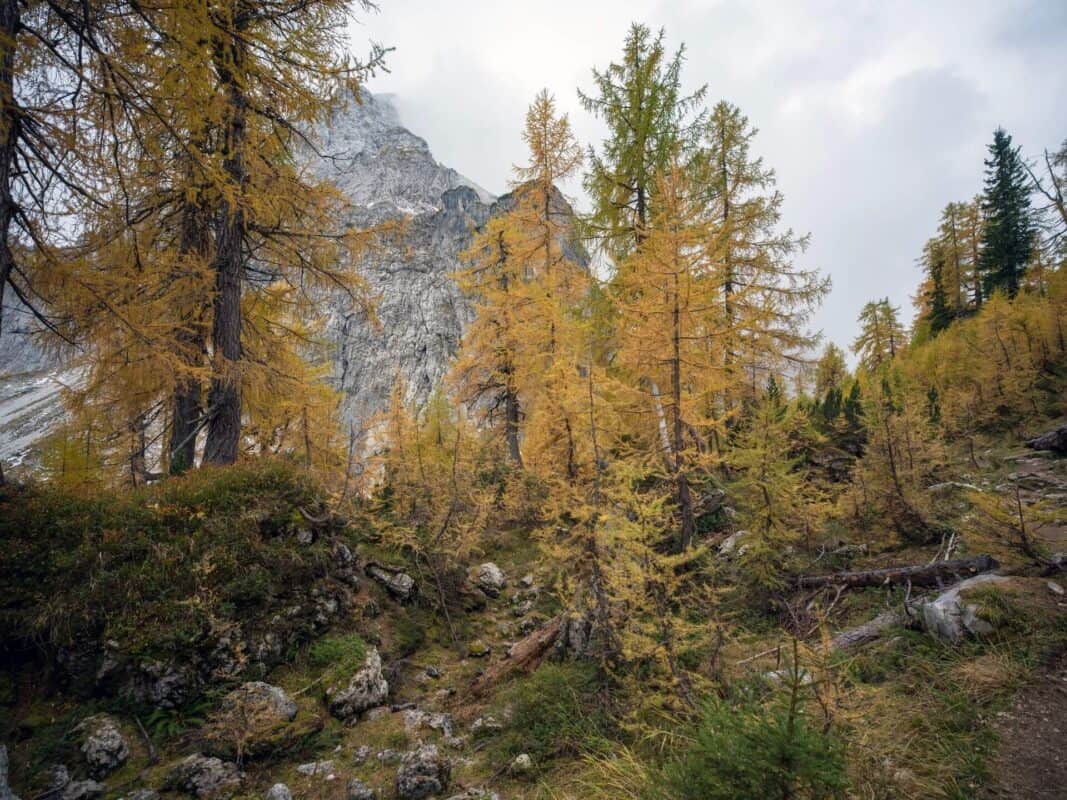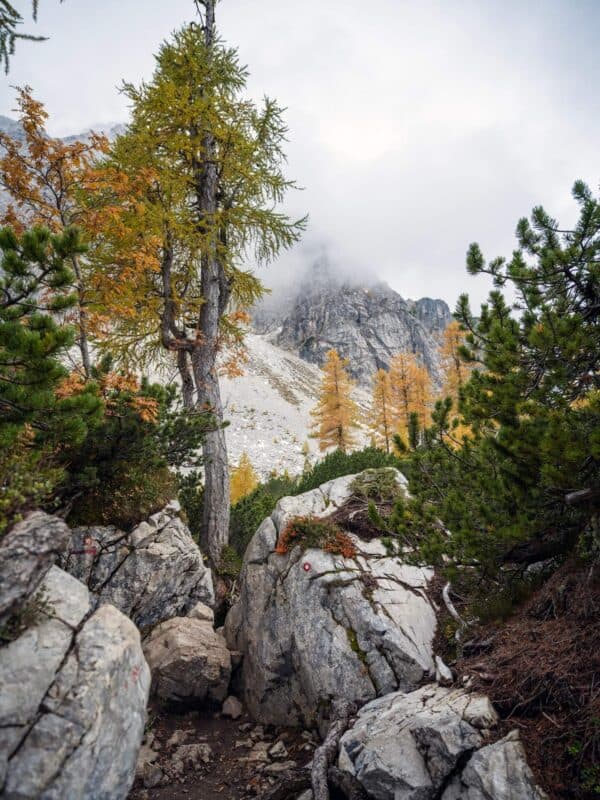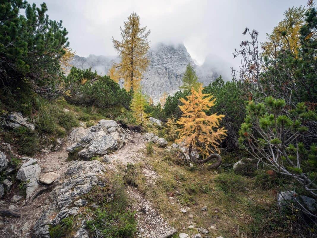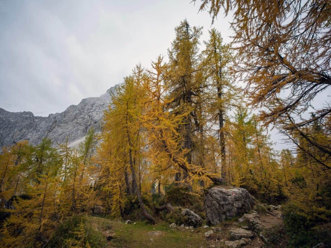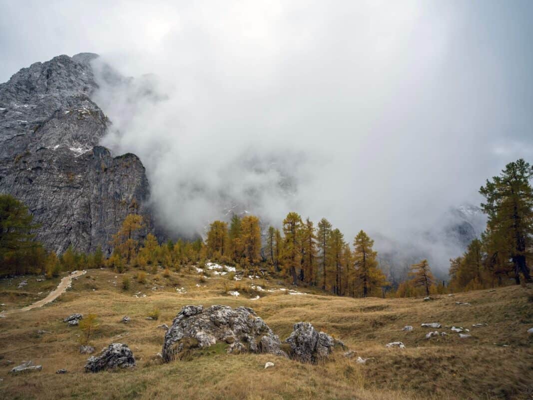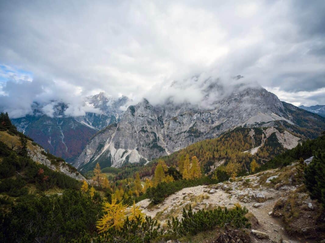 Ahogy a délután estébe fordul, a nap kezd elhalványulni. A vörösfenyők aranytónusai narancssárgává, majd mélyvörössé válnak, míg végül az egész erdő úgy ragyog, mintha lángolna. Az ösvény visszafelé Erjavčeva Koča szinte misztikusnak tűnik ebben az órában. A csend elmélyül, a levegő lehűl, és minden lépés lelassul. Olyan érzés, mintha egy másik világba léptél volna át – egy olyanba, ahol az idő lassabban telik, és minden lélegzetvétel ajándéknak tűnik.