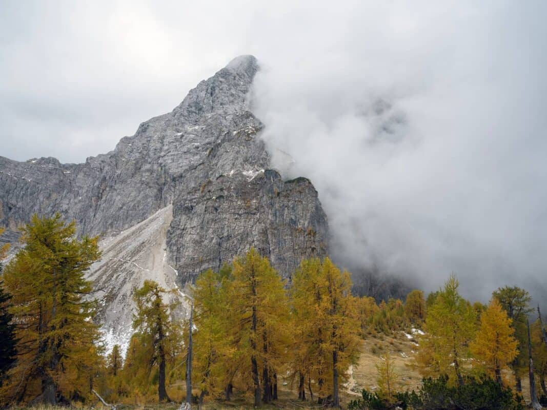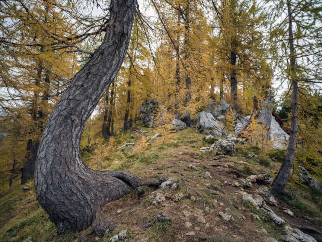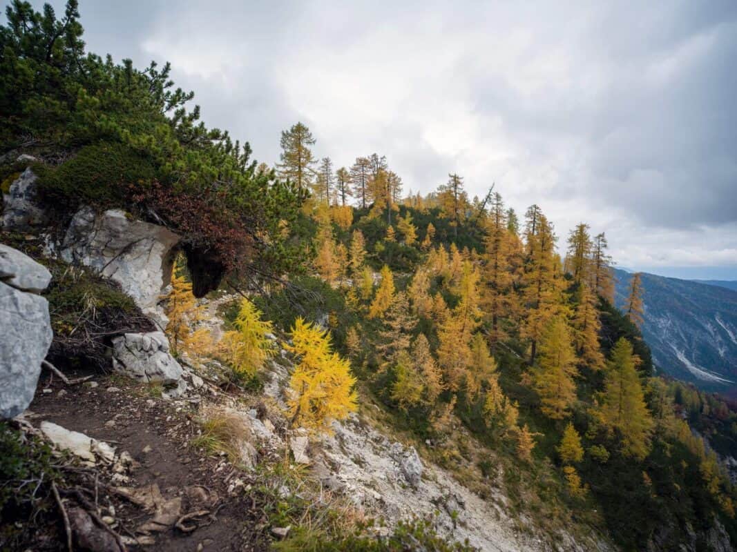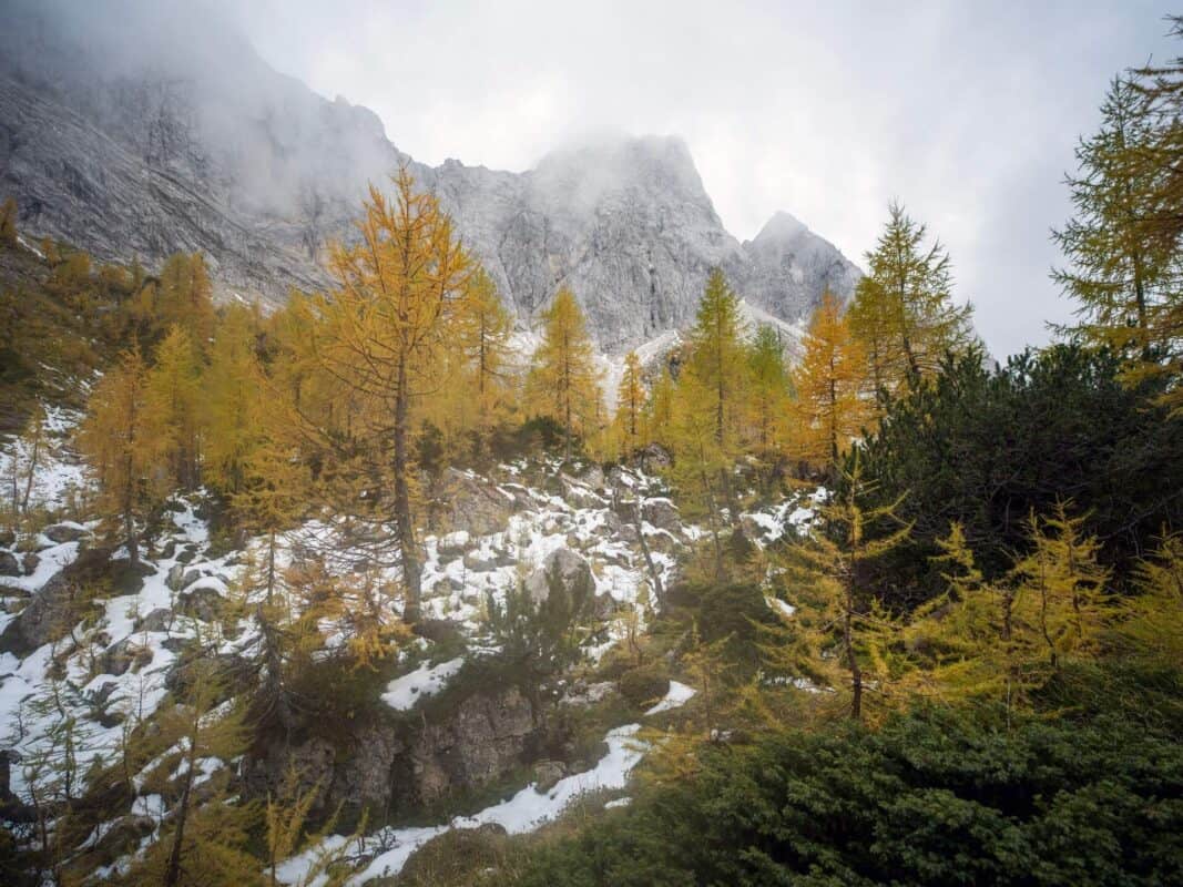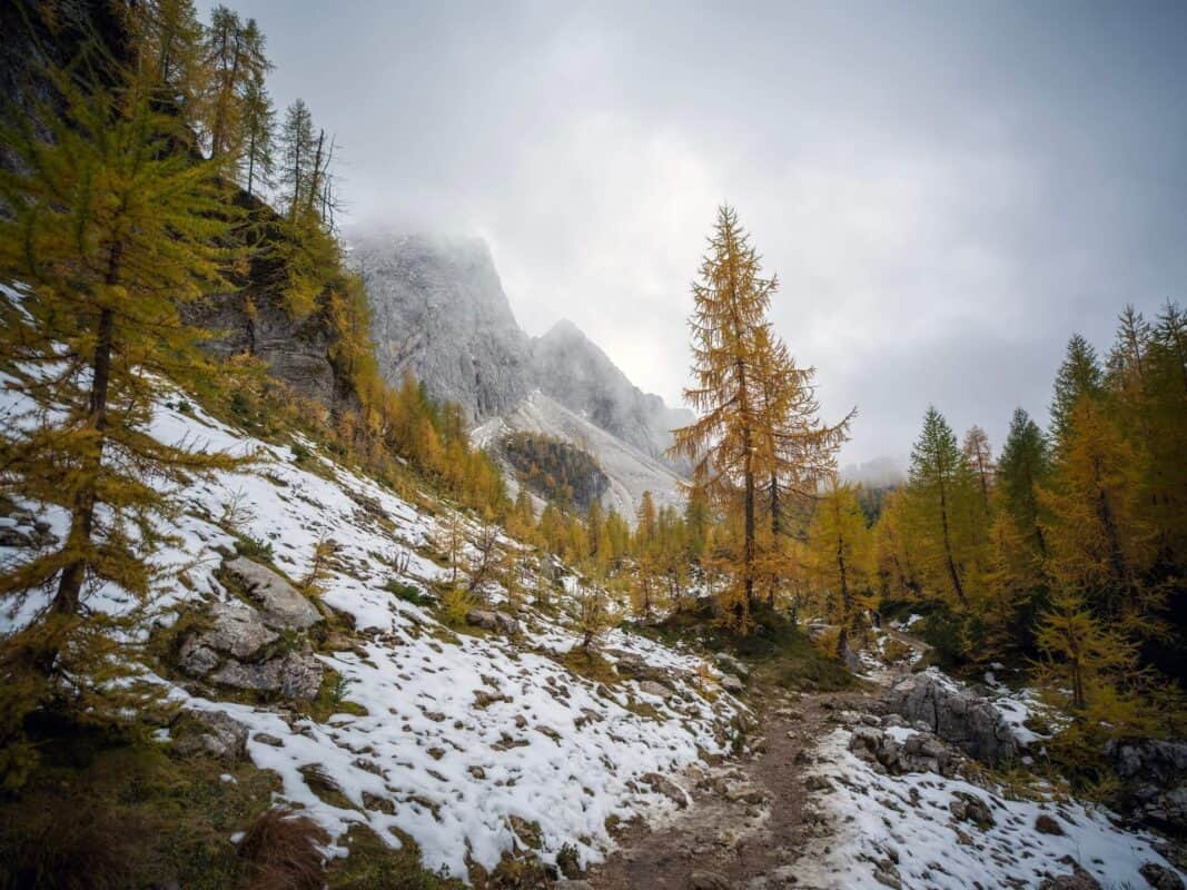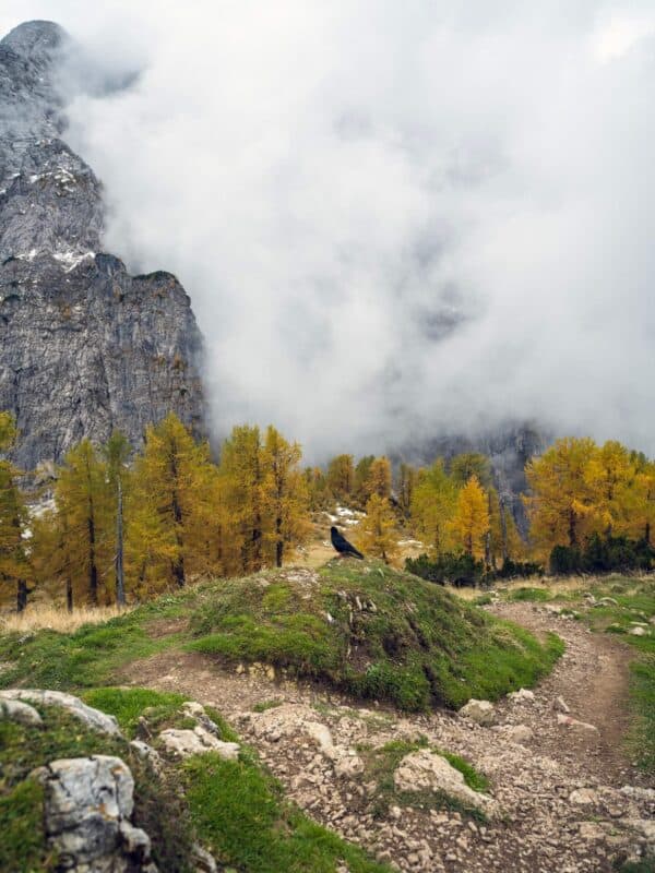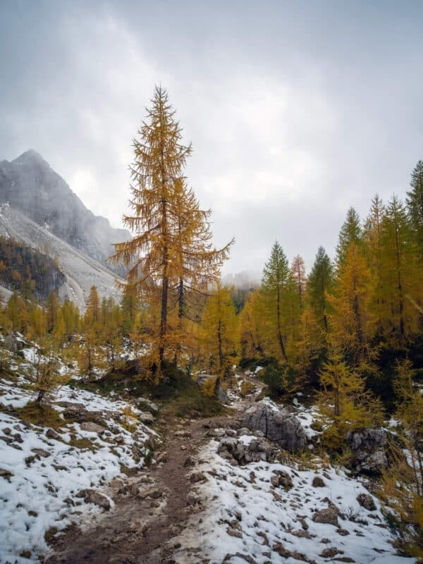 Ahogy a délután estébe fordul, a nap kezd elhalványulni. A vörösfenyők aranytónusai narancssárgává, majd mélyvörössé válnak, míg végül az egész erdő úgy ragyog, mintha lángolna. Az ösvény visszafelé Erjavčeva Koča szinte misztikusnak tűnik ebben az órában. A csend elmélyül, a levegő lehűl, és minden lépés lelassul. Olyan érzés, mintha egy másik világba léptél volna át – egy olyanba, ahol az idő lassabban telik, és minden lélegzetvétel ajándéknak tűnik.