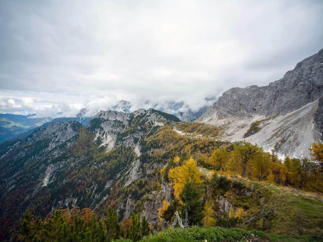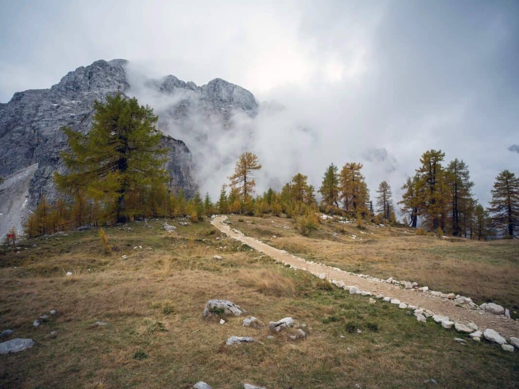 Ahogy az ösvény a puha füvön halad tovább, minden lépés könnyebbnek tűnik. Nehéz elhinni, hogy a túrát a Erjavčeva Koča a címre Sleme alig több mint egy óra könnyű gyaloglás. Az ösvény minden métere mégis tele van részletekkel – a fák között átszűrődő fény, a gyanta illata, a csend, amelyet csak egy alpesi kánya hívása vagy az alatta húzódó szerpentinúton kanyargó autó halk zúgása tör meg.