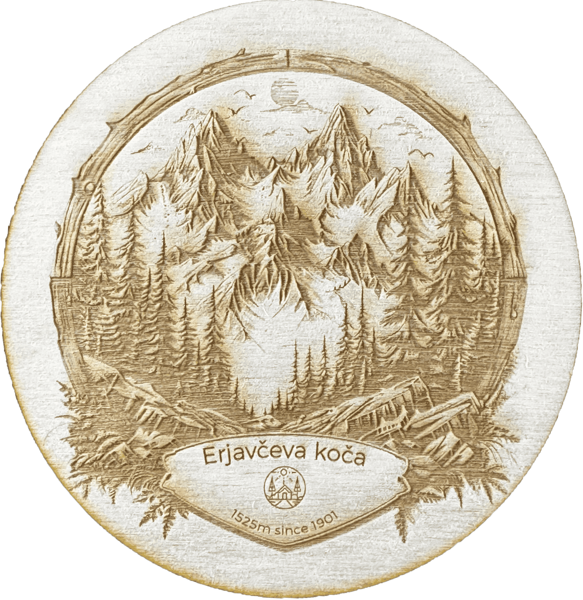A lézergravírozott fa talapzat vagy mágnes több mint egyszerű dísztárgy; ez a kézművesség és a művészet keveréke, amely a természet szépségét és a Júliai-Alpok szellemét tükrözi. Ez a különleges talapzat vagy mágnes tömör, fenntartható módon előállított fából készült, és a Vršič-hágó és az ikonikus Erjavčeva koča hegyi kunyhó lényegét megörökítő, bonyolult lézergravírozással készült.